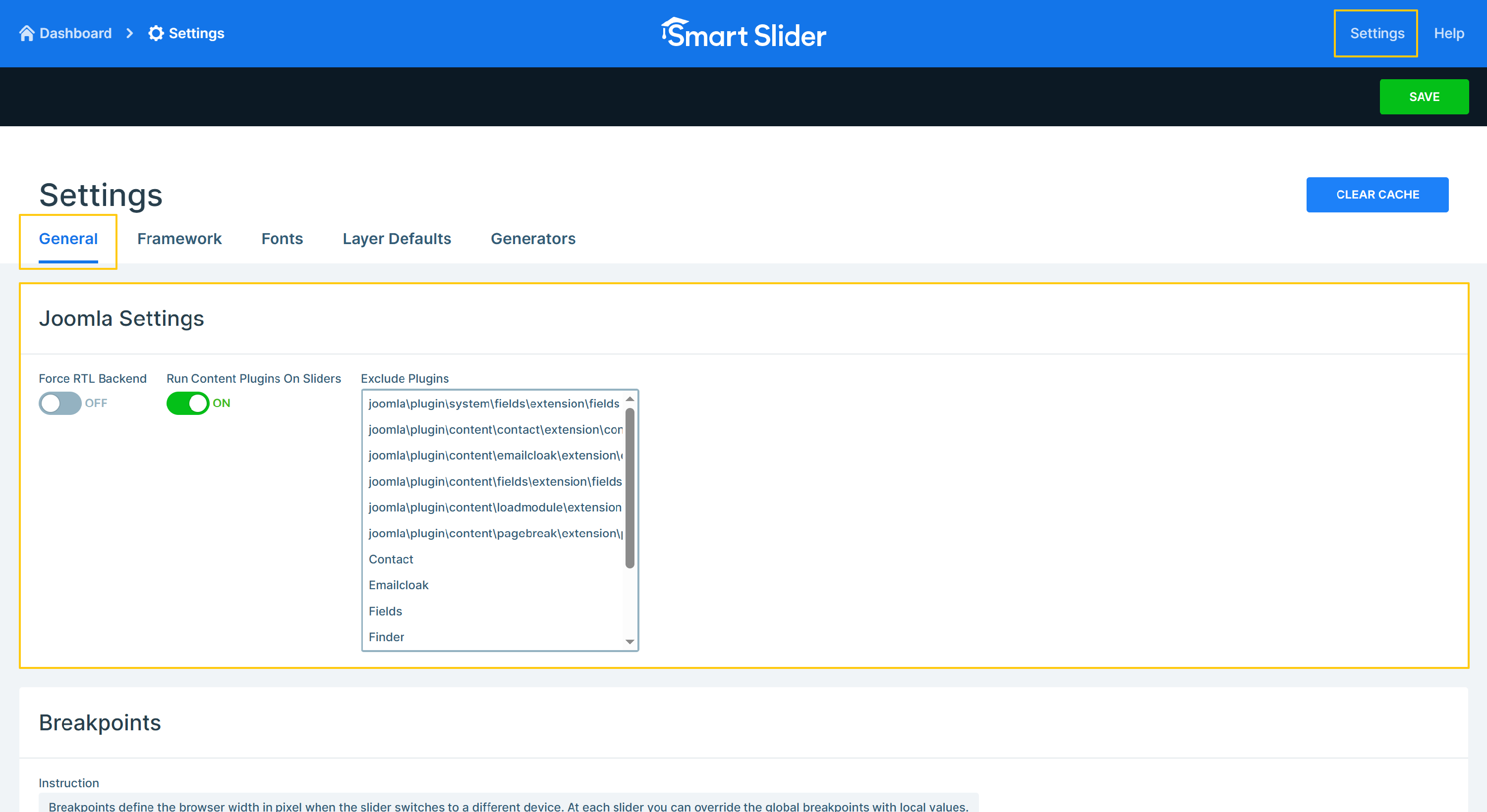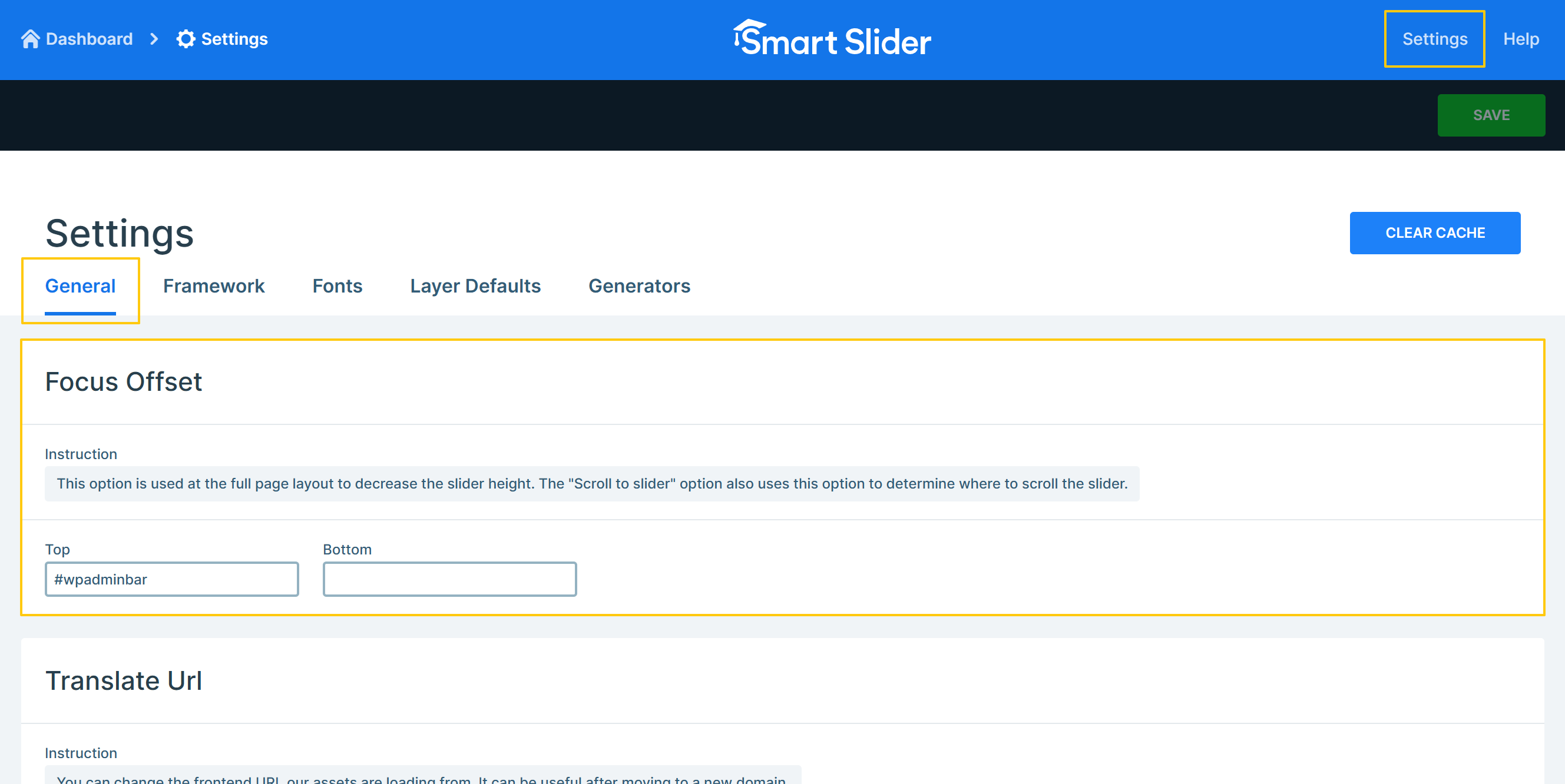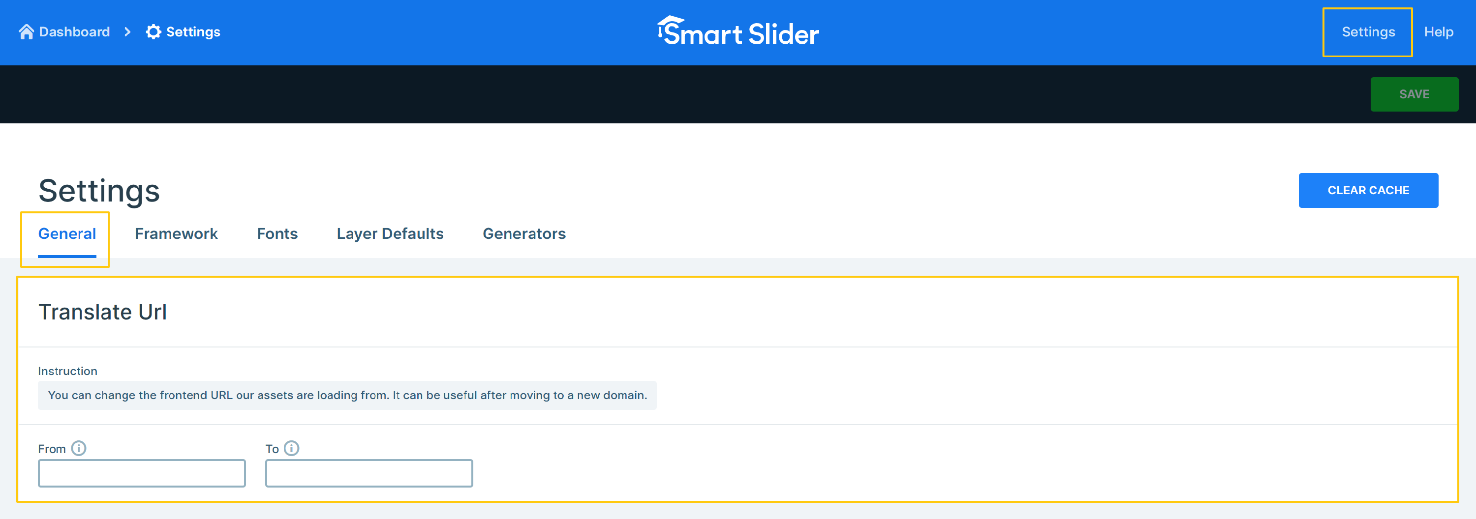 You can reach the Global Settings from the Header bar on both the Dashboard and the Slider settings page.